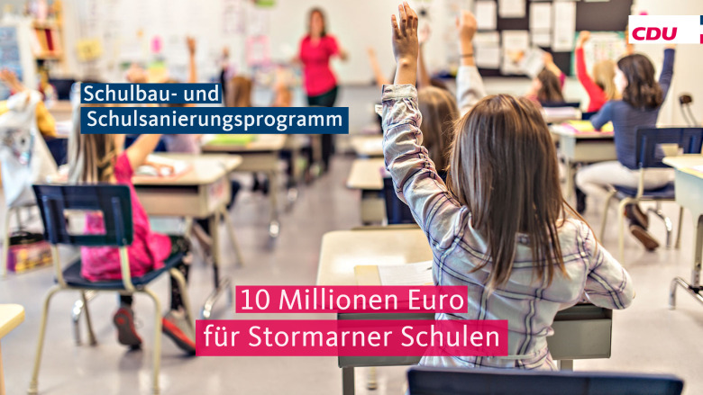 „Ich bin froh, dass wir mit dem Impulsprogramm den Schulträgern in Stormarn unter die Arme greifen können. Nur so können wir die Schulen im Kreis verbessern und auf den neuesten Stand bringen. Dadurch schaffen wir eine gute Lernumgebung, die maßgeblich zum Lernerfolg beiträgt. Schließlich profitiert durch eine gut ausgebildete junge Generation die ganze Gesellschaft“, freut sich der für Reinbek, Glinde, Oststeinbek und Barsbüttel zuständige CDU-Landtagsabgeordnete Lukas Kilian.