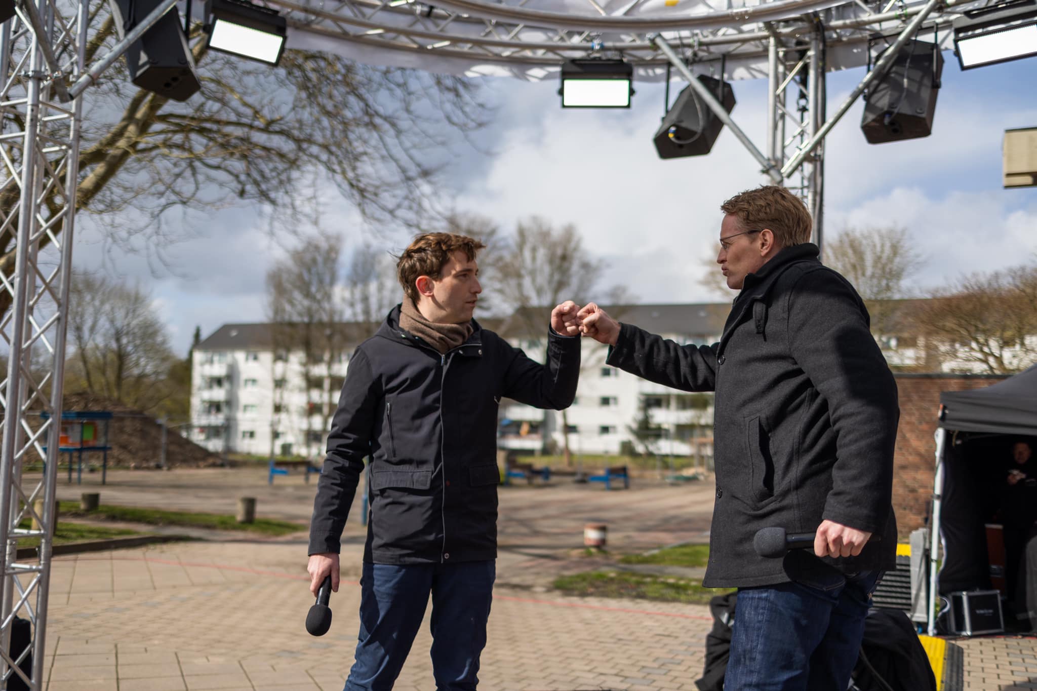 Gute Stimmung am Samstagnachmittag auf dem Täbyplatz: Daniel Günther besuchte Reinbek am vergangenen Wochenende und stand rund 150 Interessierten Frage und Antwort. Gemeinsam mit dem Landtagsabgeordneten Lukas Kilian, dessen Wahlkreis Reinbek, Glinde, Oststeinbek, Wentorf und Barsbüttel umfasst, nahm sich der Ministerpräsident viel Zeit für die Fragen und Bedürfnisse der Bürger und Bürgerinnen.