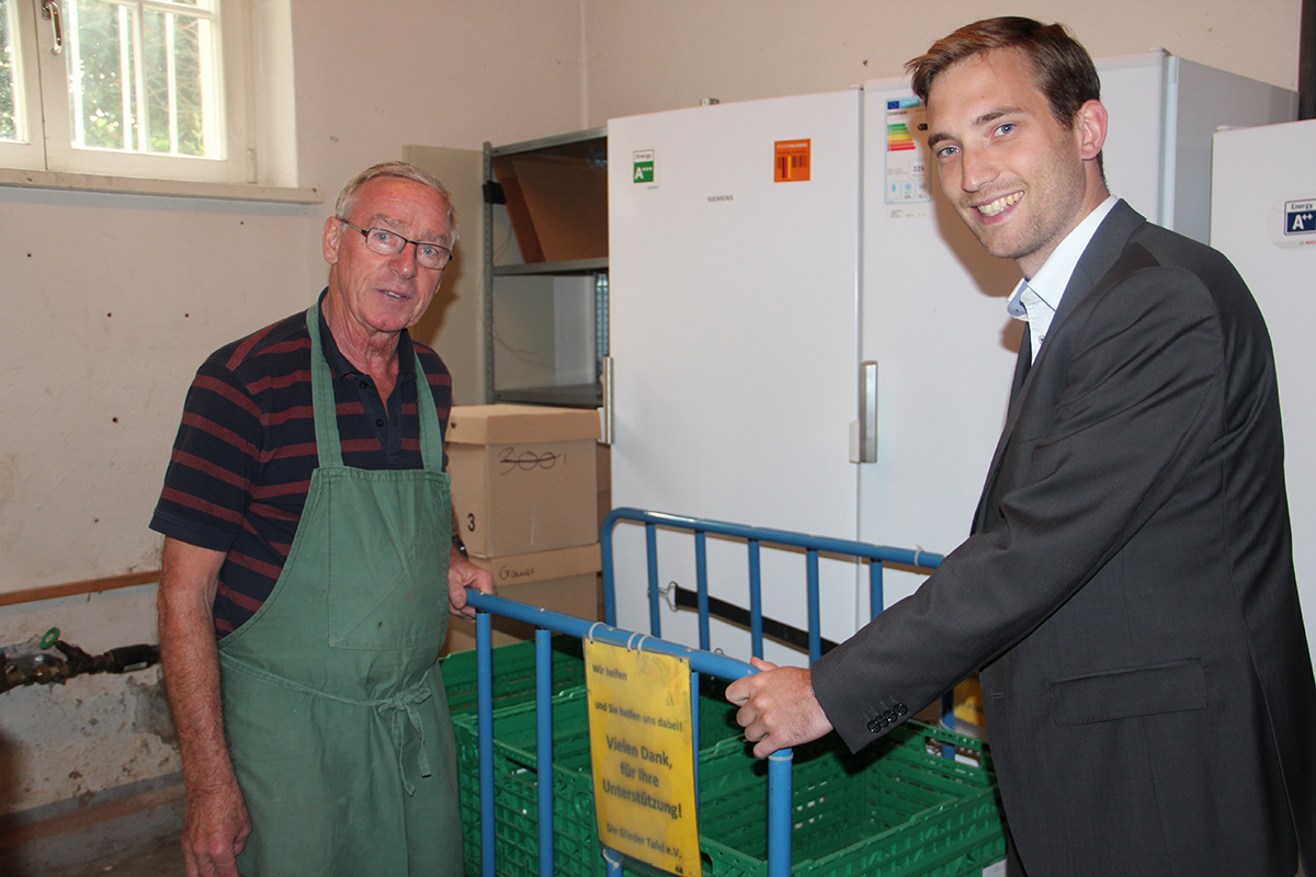 Einmal im Jahr müssten die Kunden ihre Bedürftigkeit nachweisen und pro Einkauf einen Euro bezahlen. Auch erfuhr der Landtagskandidat, dass es einen Vier-Monatsplan gibt, um die Aufteilung der HelferInnen gerecht zu gestalten. Insgesamt gehörten der Glinder Tafel 70 Mitglieder an, deren monatlicher Beitrag 2 Euro betrage. ,,Wir sind natürlich auf Spenden angewiesen, weil die monatlichen Belastungen hoch sind", berichtet der Vereinschef, denn Miete, Benzin, Versicherungen, Reinigungsmittel, Mülltüten, Handschuhe und Vieles mehr müssen bezahlt oder angeschafft werden. Auch wären Warengutscheine willkommen. ,,Es gibt bestimmte Lebensmittel, die wir nicht bekommen, wie zum Beispiel Zucker, Mehl, Käse oder Marmelade und Honig", ergänzt er.