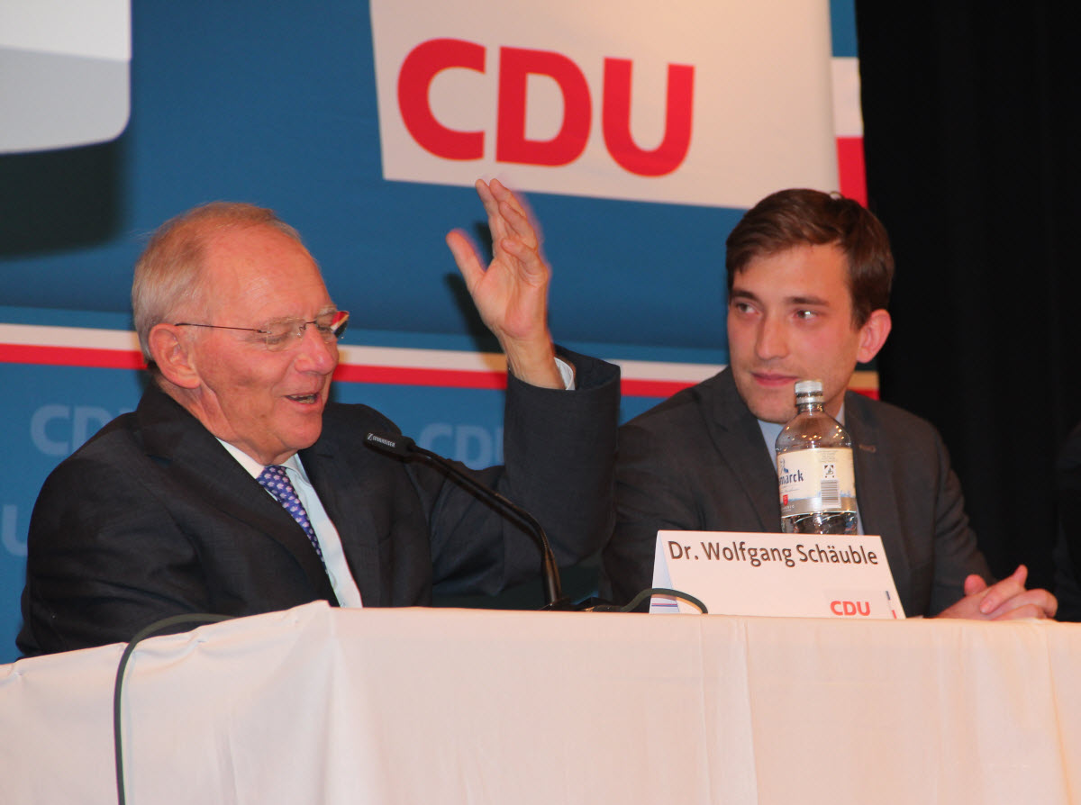 Der Bundesfinanzminister ging aber auch auf die Veränderungen auf dem Arbeitsmarkt ein: ,,Die Globalisierung und Digitalisierung fordern unsere Weitsicht bis 2025. Wir müssen in Forschung, Entwicklung und Innovationen investieren, und nicht wie die SPD jetzt über Veränderungen in der seit 2003 geltenden Agenda 2010 debattieren", kritisierte Schäuble. Mit der Weitsicht meine er auch die Verkehrsinfrastruktur im Bund, in der die Regierung zur Zeit 35 Prozent ihrer Einnahmen investieren. Das gelte auch für vereinfachte Verkehrsvorhaben. ,,Leider haben SPD und Grüne diese im Bundesrat abgelehnt. Wir haben da keine Mehrheit", bedauerte der sehr agile und angriffslustige 74-Jährige.