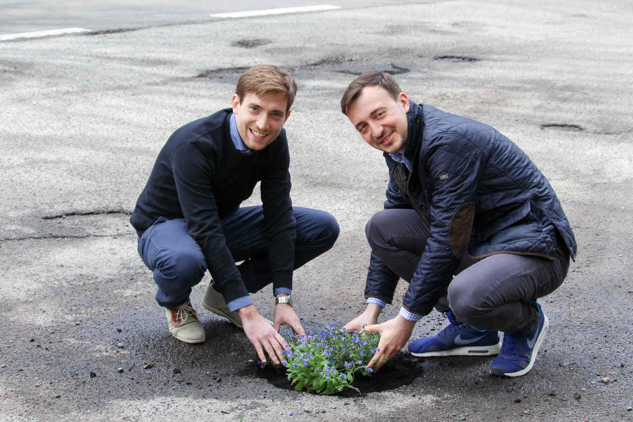 „Viele Landesstraßen und Radwege sind in einem erbärmlichen Zustand“ meint Lukas Kilian, CDU Landtagskandidat. Um den Zustand der Landesstraßen anzumahnen, pflanzte Lukas Kilian gemeinsam mit dem Bundesvorsitzenden der Jungen Union Deutschlands Paul Ziemiak Vergissmeinnicht in ein Schlagloch an der Möllner Landstraße (L 94).